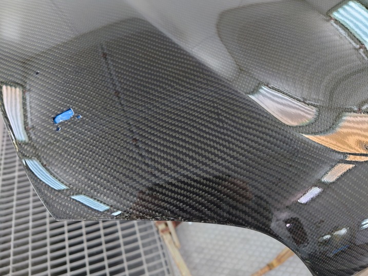 スバル プレオ 社外カーボンボンネットフード 剥離修理例