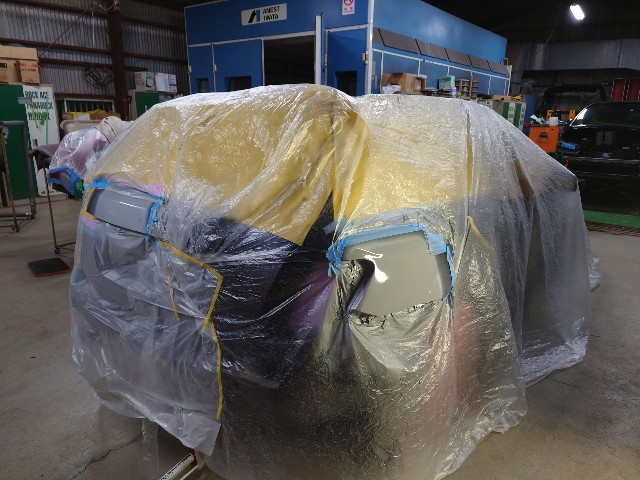 サフェ研ぎ、足付け、マスキングを行い塗装準備が整いました。