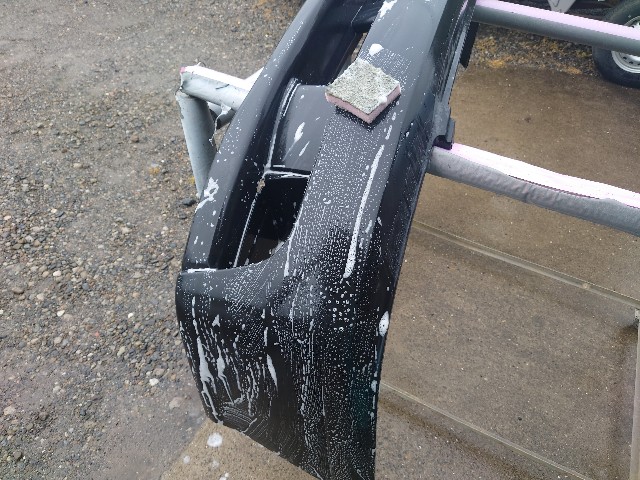 フロントバンパーは新品未塗装品なので、ハジキシラズを使用し研ぎ目を付けます。
