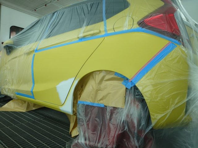 ホンダ フィット 左リアドア、クオーターパネル鈑金修理例