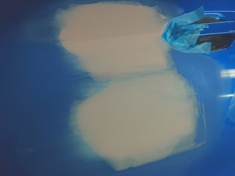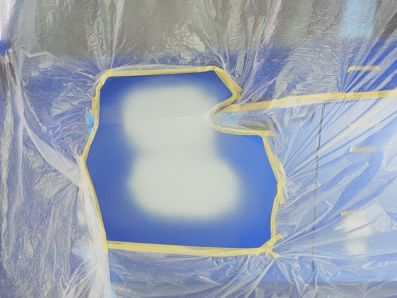シリコンオフによる脱脂作業の後にブルーのカラーベースを塗装していきます。