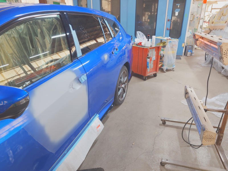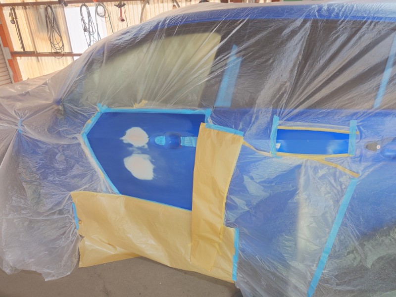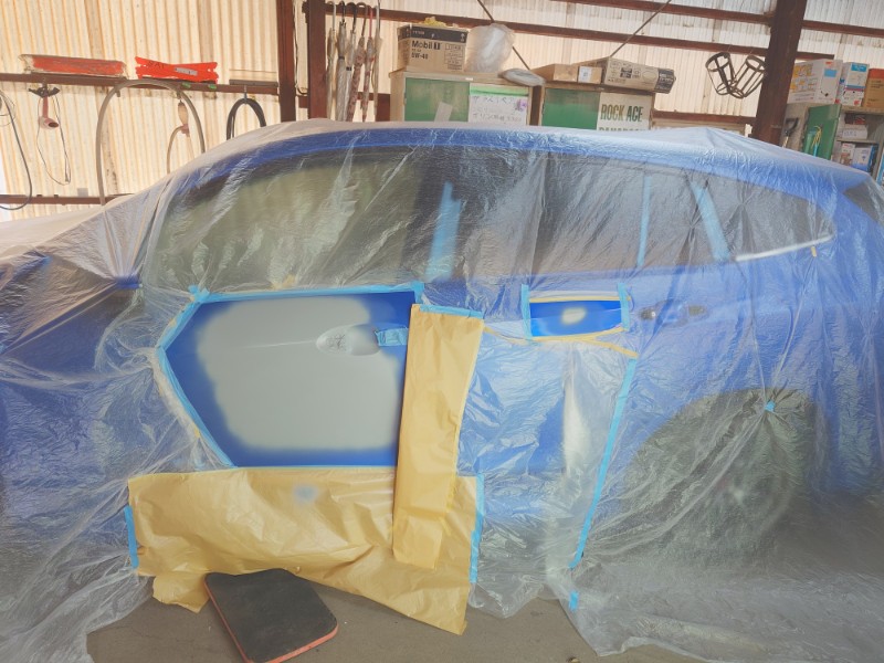 サフェを研磨後に周辺部の足付けを行いマスキング作業にかかりました、