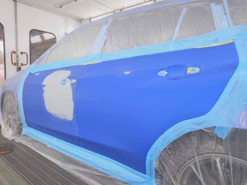 大肌にならないように気を付けてポリッシング時に隣接パネルと肌目が合うように心がけてトップコートを塗装しています。