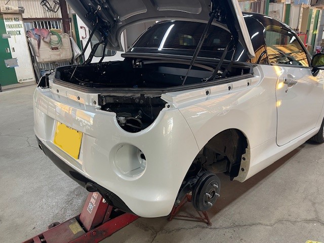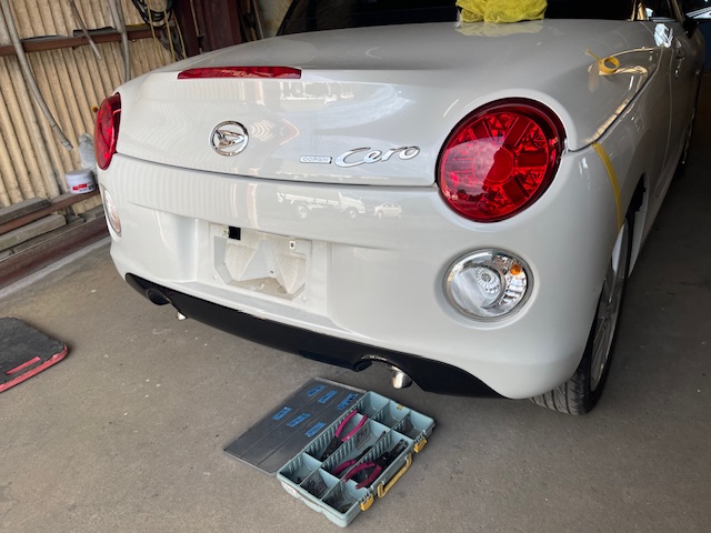 リアバンパー右側の損傷によりバンパーを新品バンパーに交換を行う為、分解を開始しました。