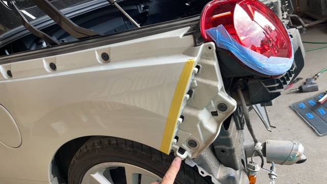 破断してしまった部品が無くなってしまったのでリサイクルパーツのクオーターパネルに交換を行う為、取り外しにかかりました。