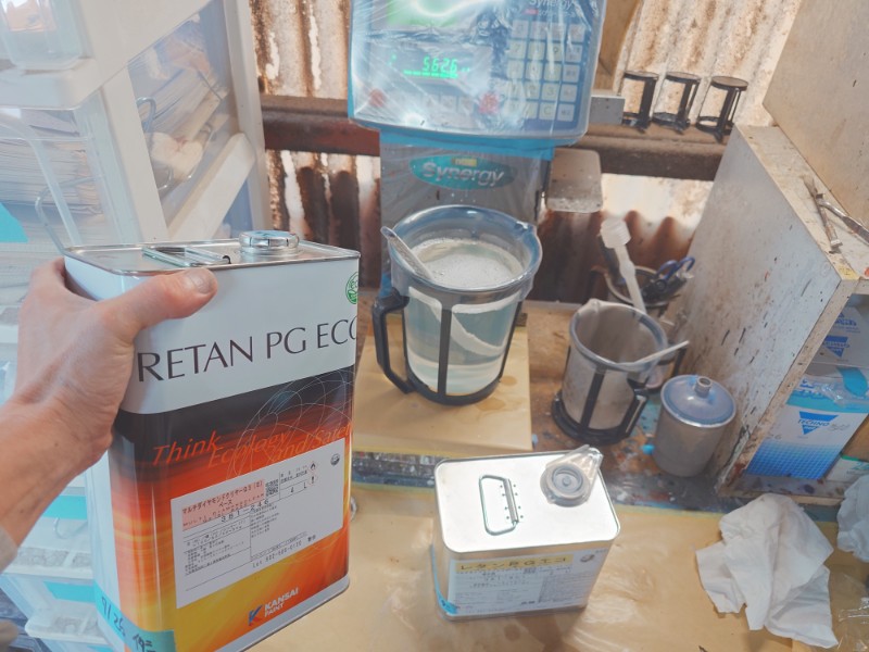 シリコンオフを使用した脱脂作業を行い、塗装を開始します。