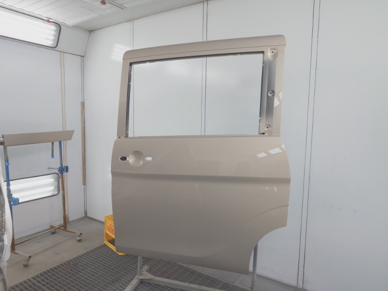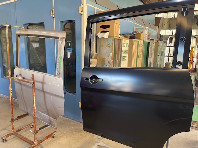 輸送中損傷が入ることがあるので届いた新品ドアパネルの点検を行い、仮合わせでボディーに取り付けられるよう組替作業を行っています。