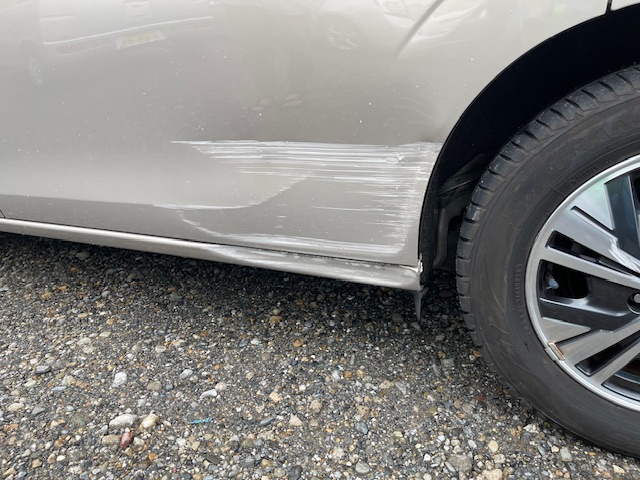 左リアドアからリアバンパーにかけて損傷を修理致します。