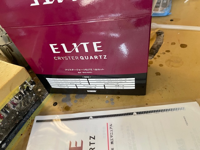 ポリッシング終了後に脱脂を行ってから撥水ガラス系コーティングのクリスターエリートを修理、交換部分への施工作業にかかりました。