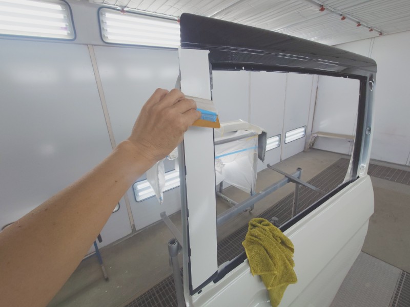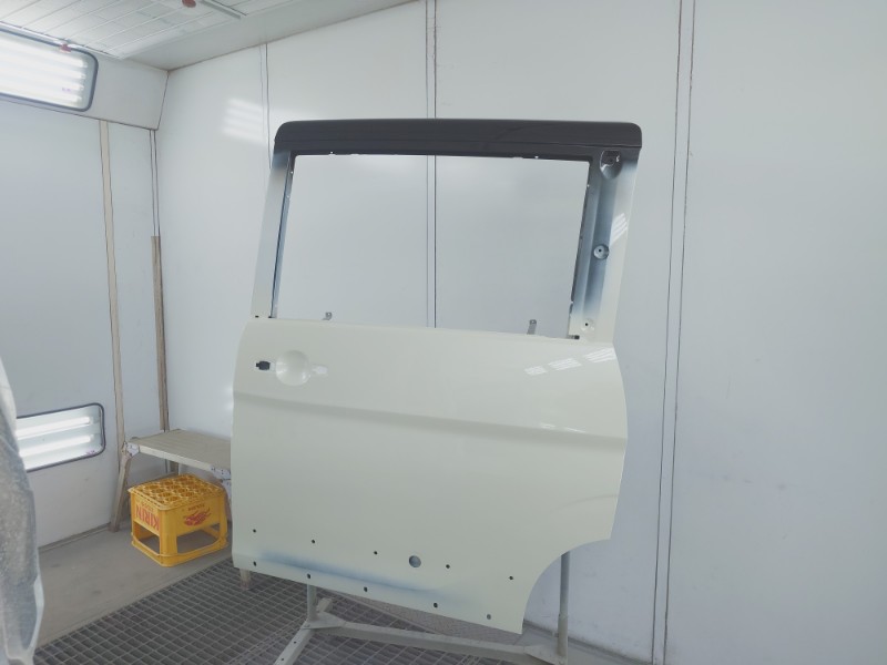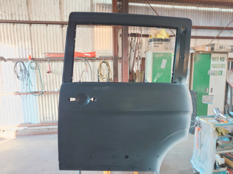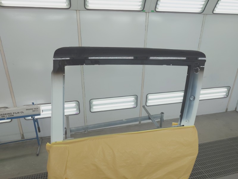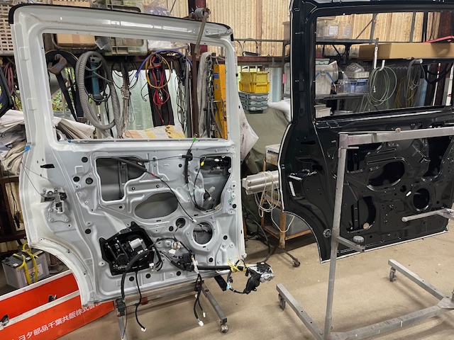 工場に届いた新品パネルの点検を行い、仮合わせでボディーに取り付けが出来るように部品を組み替え始めました。