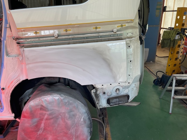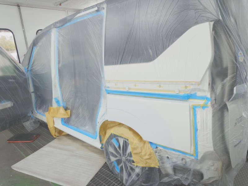 バンパーとスライドドアのサフェーサー塗装が完了しました。