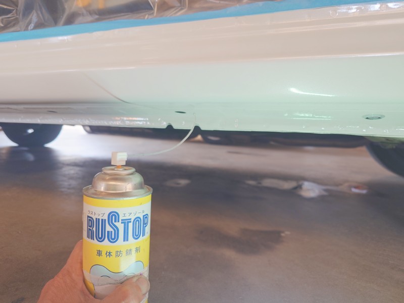 ロッカー部も先端を曲げたノズルを使用して鈑金部分に吹き付けを行いました。