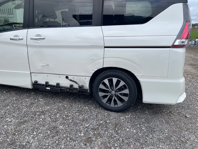 左側リアドアよりクオーターパネル、リアバンパーにかけて発生してしまった損傷を修理致します。