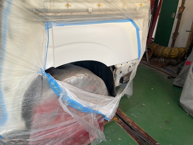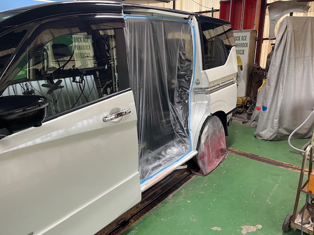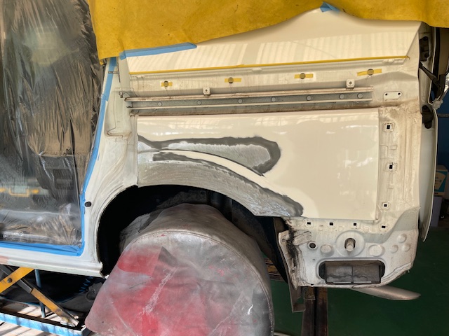 ボデー側は板金修理の際に粉が発生するので車内に入らない様ノーポリで養生を行いました。