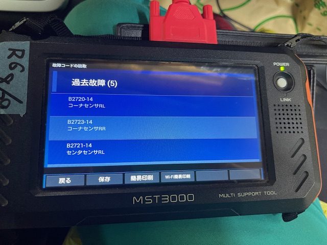 診断機を使用して脱着による故障履歴を含めDTCすべてリセットを行い全システム異常なしにします。