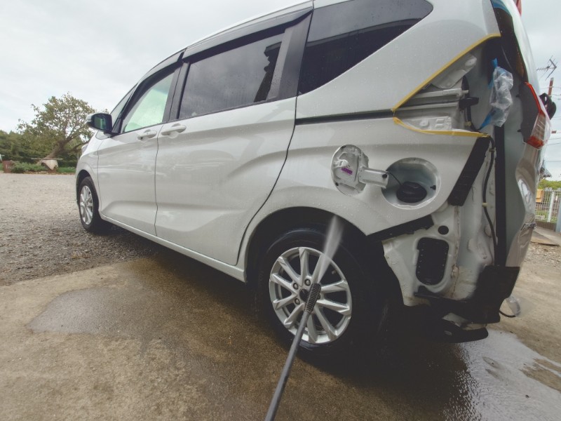 バンパー等の取り外しを終えてから、高圧洗車機とホースを使用して洗浄を行いホイールハウスアウターと周辺のシーリングのダメージを見落とさないように心がけました。