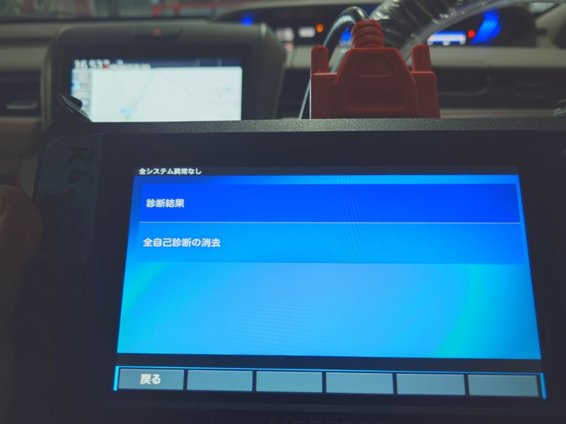 バッテリーの充電を行いながら診断機を使用して故障履歴のリセットが完了しました。