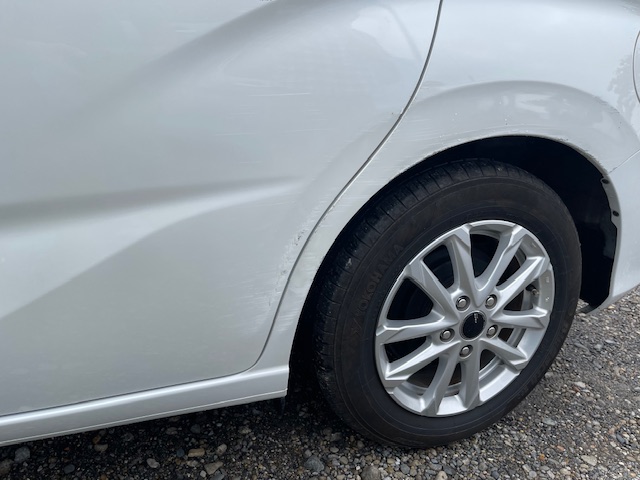 リアドアからクオーターパネルに付いてしまった損傷を修理致します。