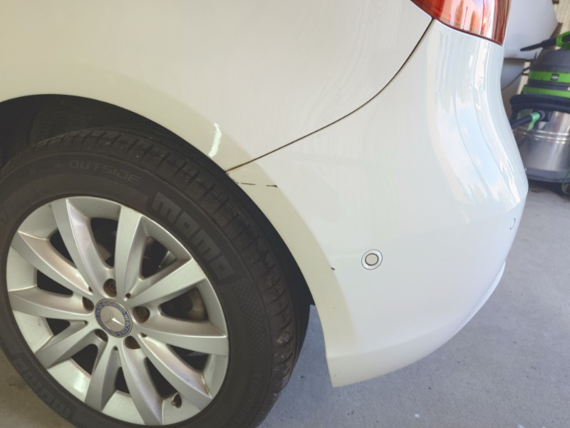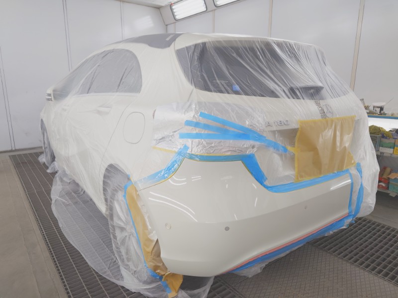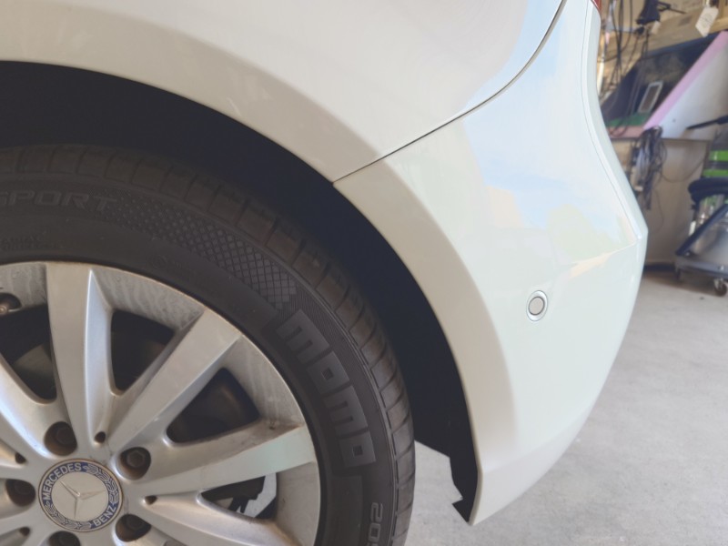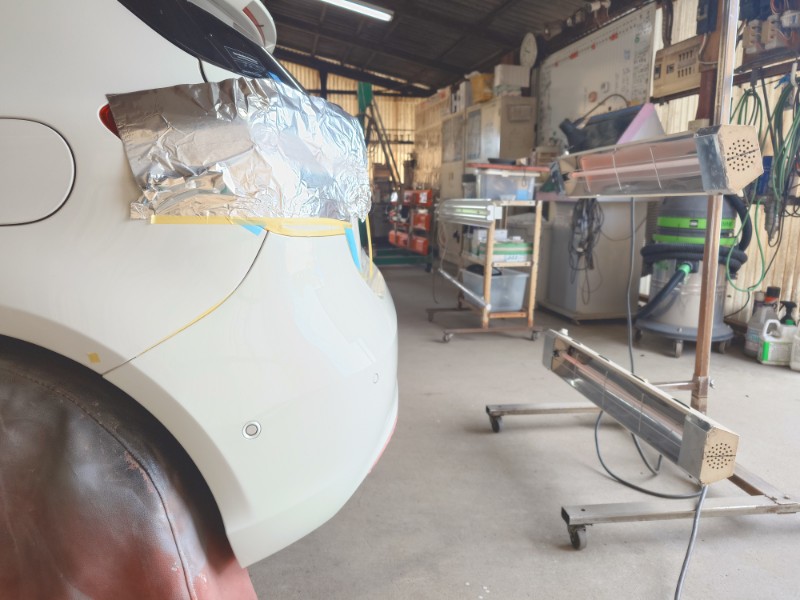 リアバンパー左側に付いてしまった擦り傷を修理致します。