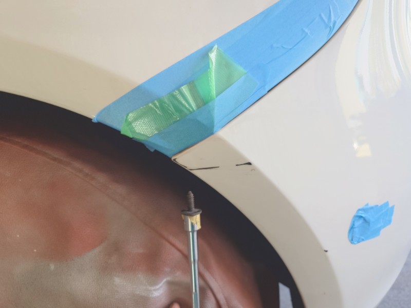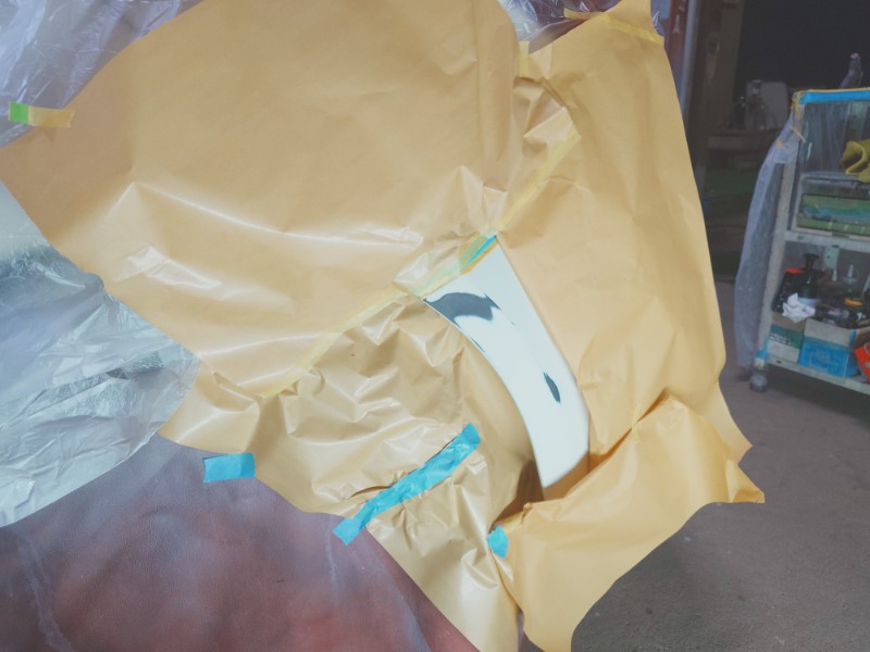 サフェーサーを塗装する範囲に足付け研磨を行いマスキングにかかりました。