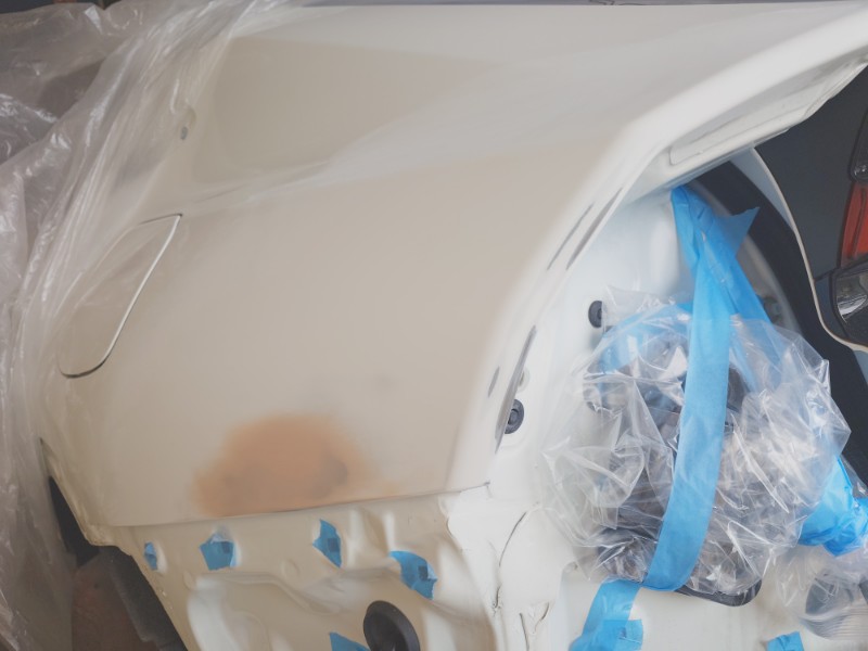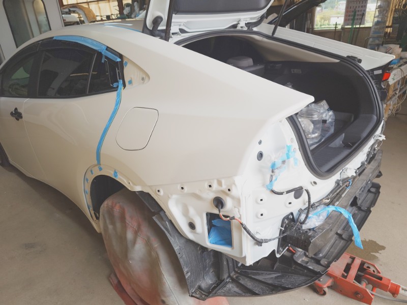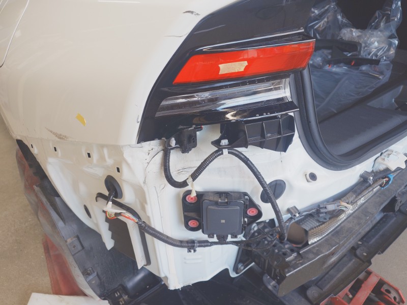 リアバンパーとテールランプは新品部品へ取り替える手順で作業を進めました。