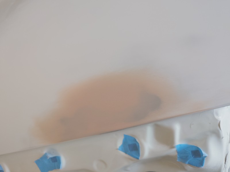 シリコンオフを使用して脱脂清掃を行った後、120番パテを付け、少し固まってきたら加熱を行います。