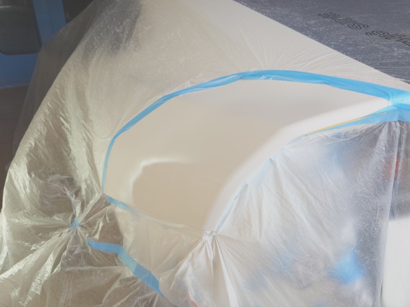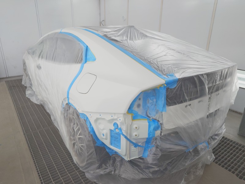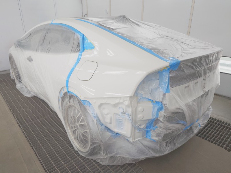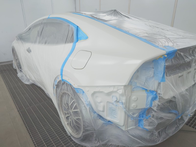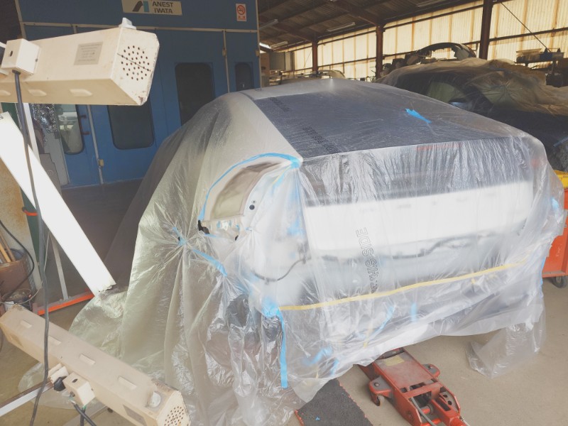 マスキングと脱脂、タッククロスを使用したエアーブローを行い塗装準備が整いました。