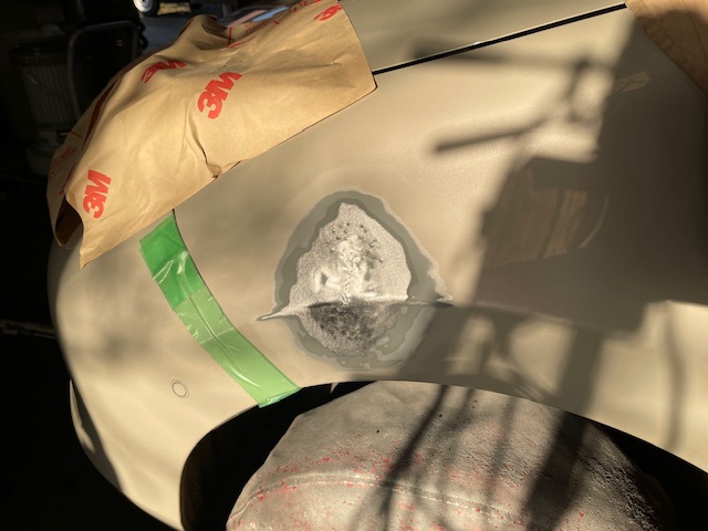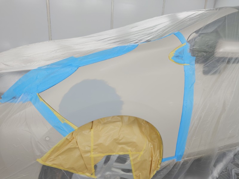 サフェーサーの研磨と周辺部の足付け研磨を行いマスキング作業にかかりました。
