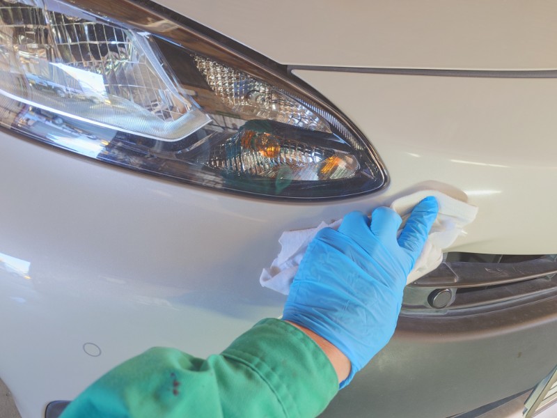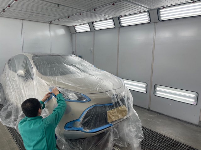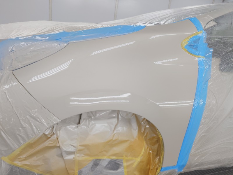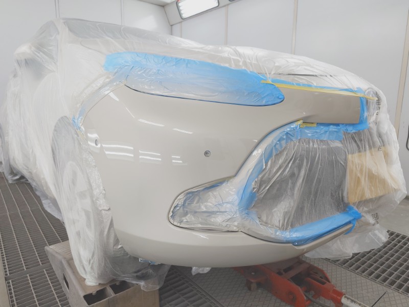 バンパーは柔軟性のある樹脂配合のトップコートクリアを使用しました。