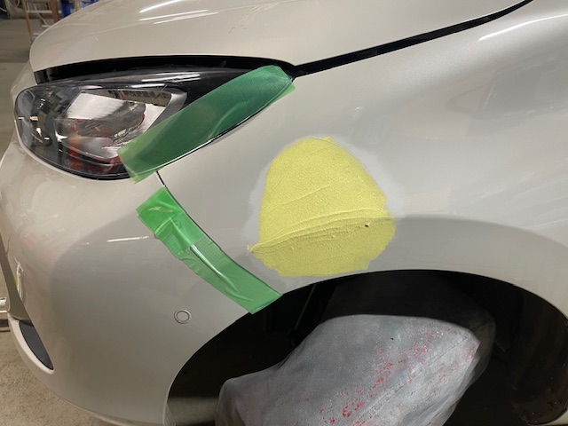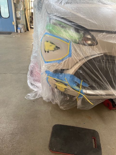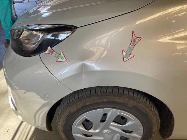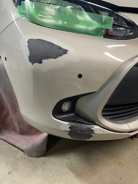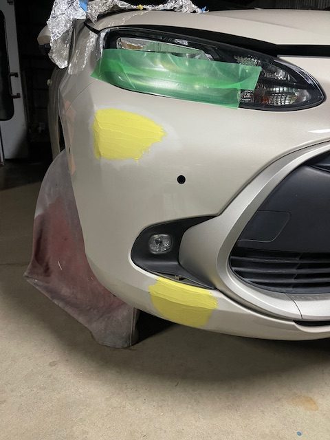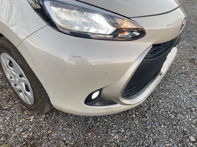 トヨタ アクア フロントバンパー及びフェンダーパネル修理例