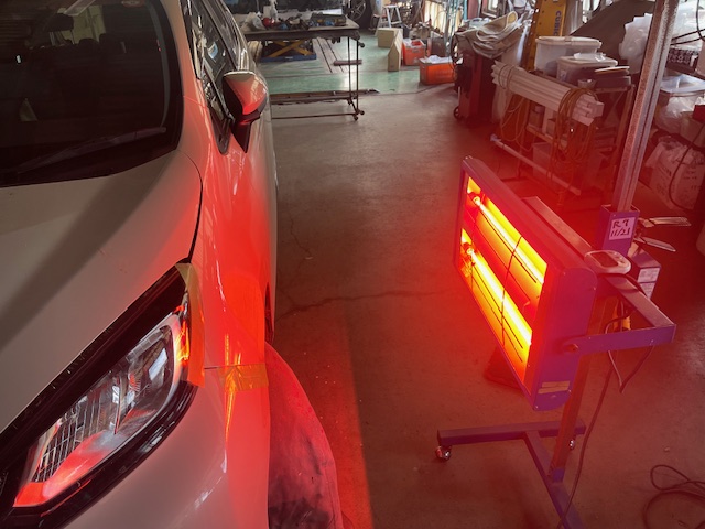バンパーは周辺の部品が熱によるダメージを受けないように注意しながら過熱を行います。