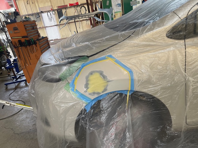 乾燥硬化後にボカシ部分をコンパウンドを使用して整えています。