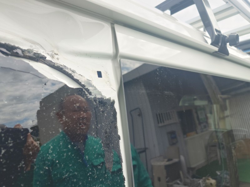 接触をしてしまいクオーターパネルおよびガラスが損傷してしまいました。