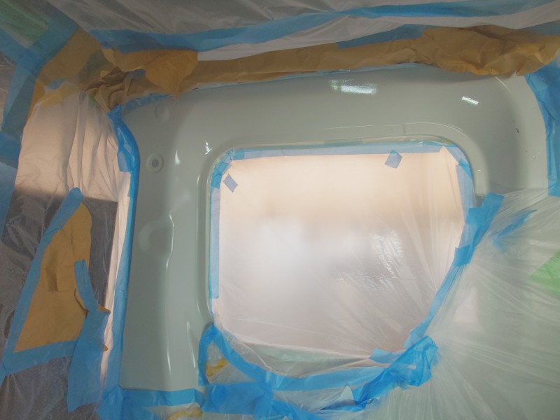 サフェーサー研磨後に車内側の塗装を先に行いました。