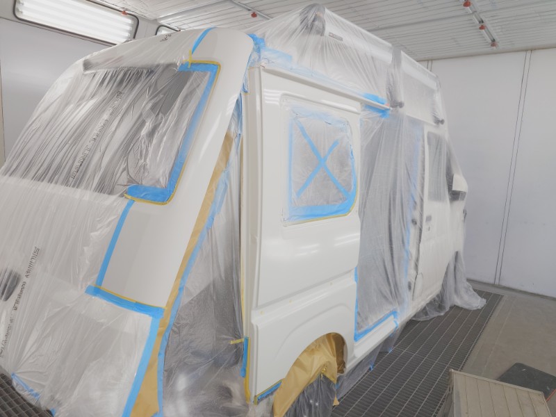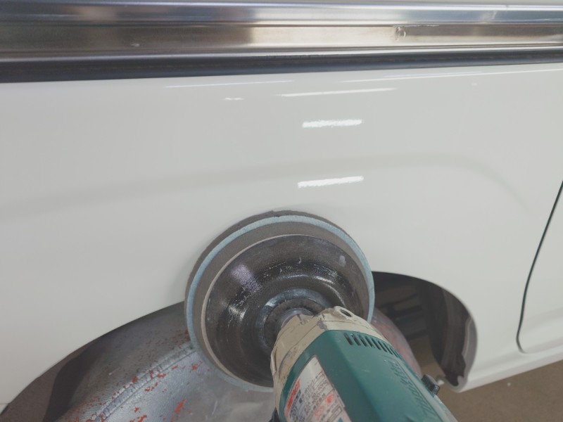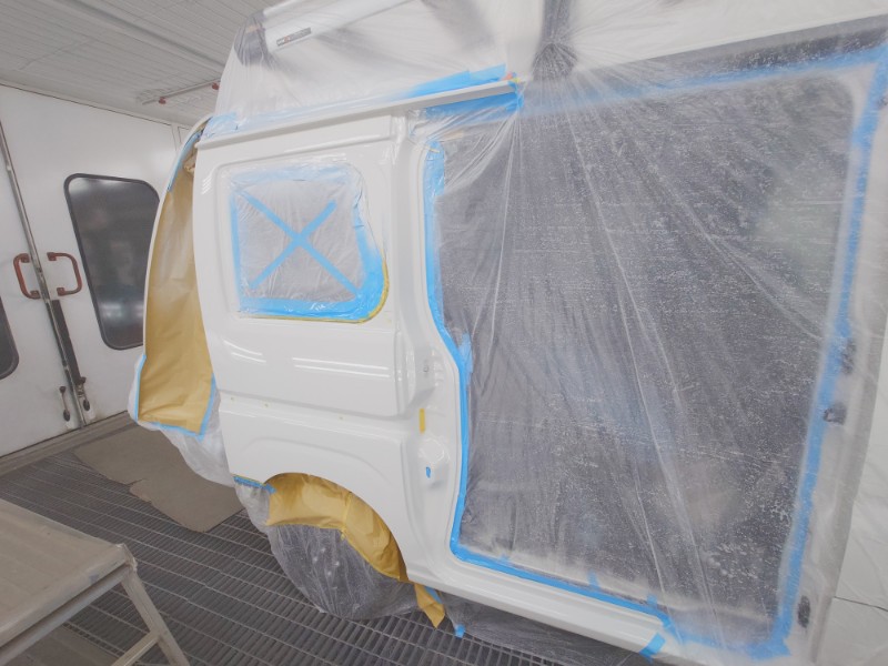 ホワイト色ですがクリアーコートを行う2コート仕上げで塗装を行いました。