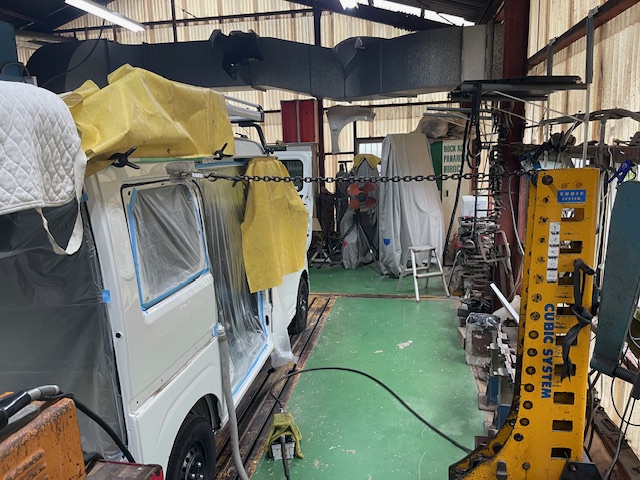 車内側も鈑金修理を行いパテ作業にかかりました。