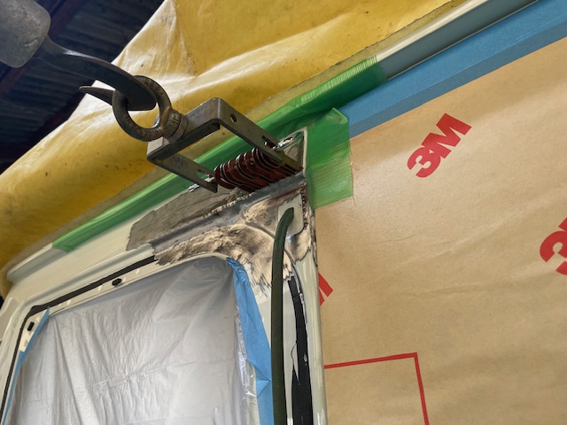 ガラスとスライドドアを外してスタッドを使用した引き作業にかかりました。