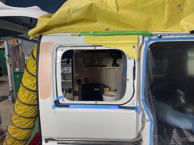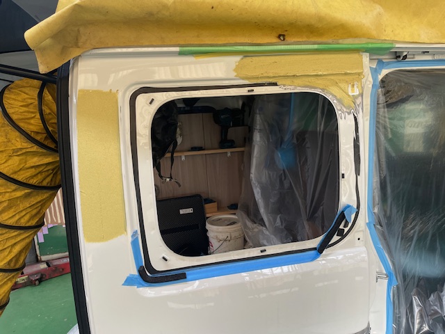 溶剤臭が車内に入らないように心がけてマスキングを行いました。