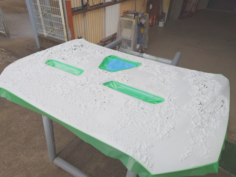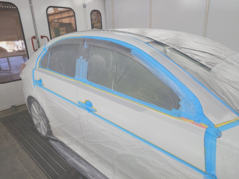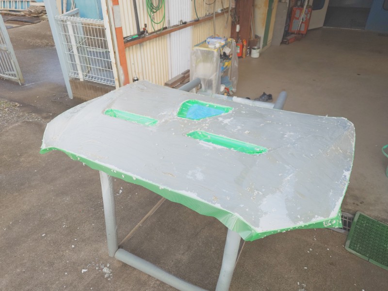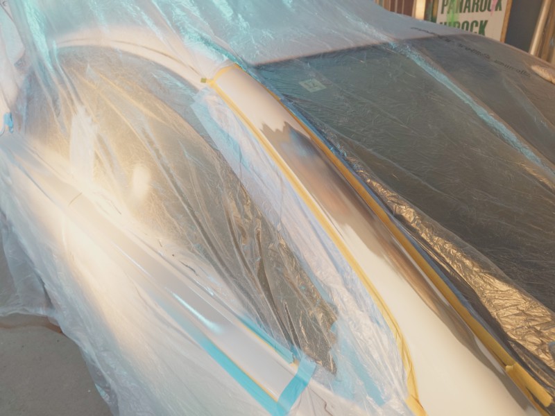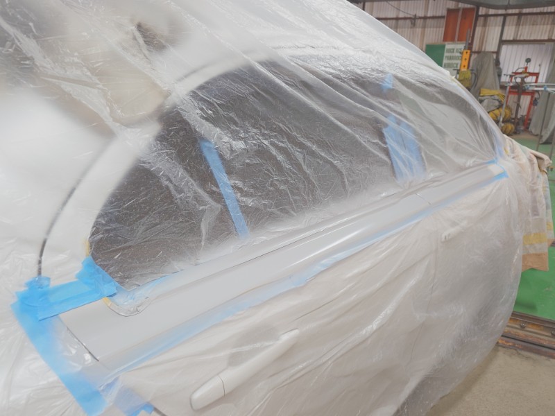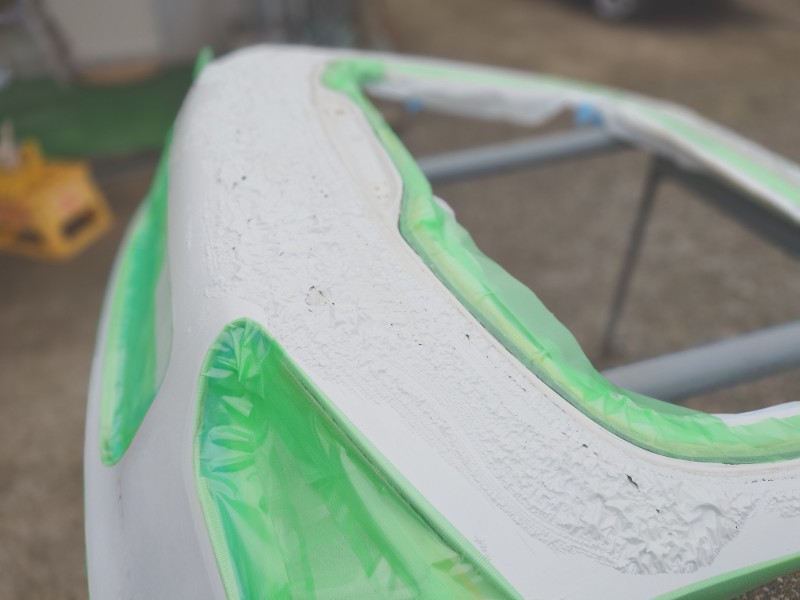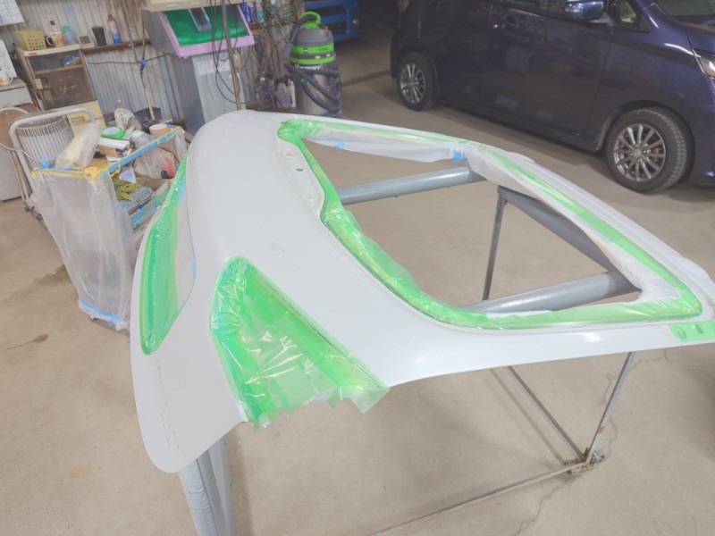 研ぎ出しが終わりマスキングを行いサフェーサーの塗装を開始しています。