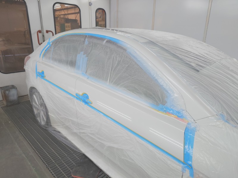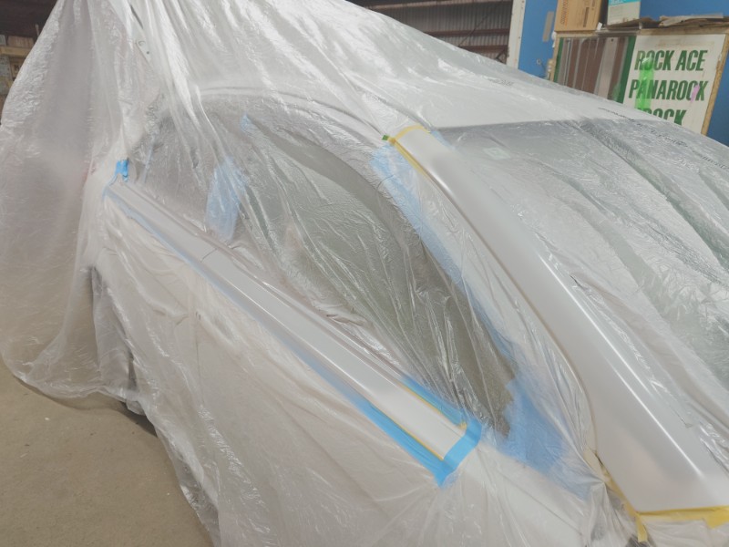 カラーベース、パールベース、トップコートクリアの塗装を行いボディー及び部品の塗装が完了しました。