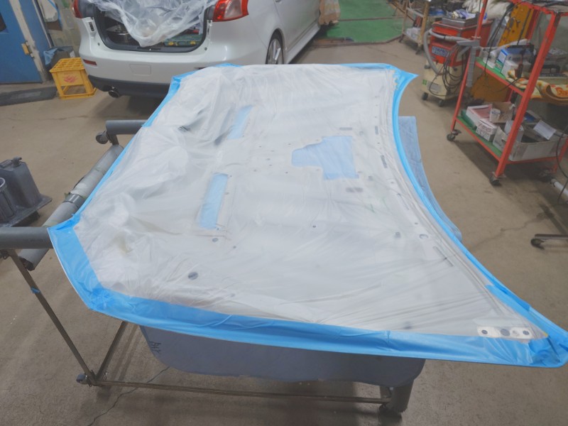 剥離剤がつかないようにフード裏面も養生を行いました。