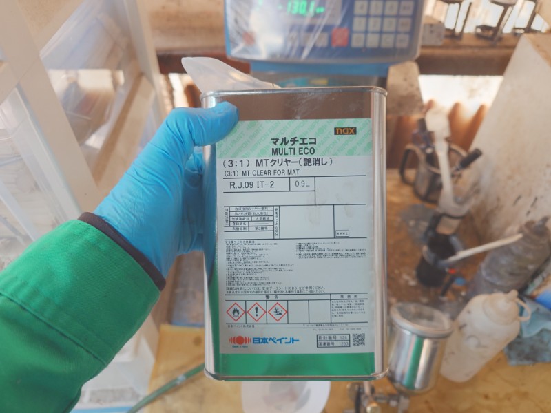 黒いダクトは艶消し専用クリアーを使用して艶消し塗装を行います。