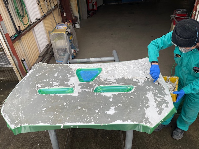 はがれた最深部まで各種サンダーを使用して研ぎ出しを行いました。