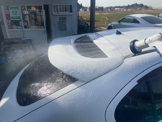 バックドアのガラスが付き、スポイラーを取り付け各部作動確認を行ってから水密検査にかかりました。