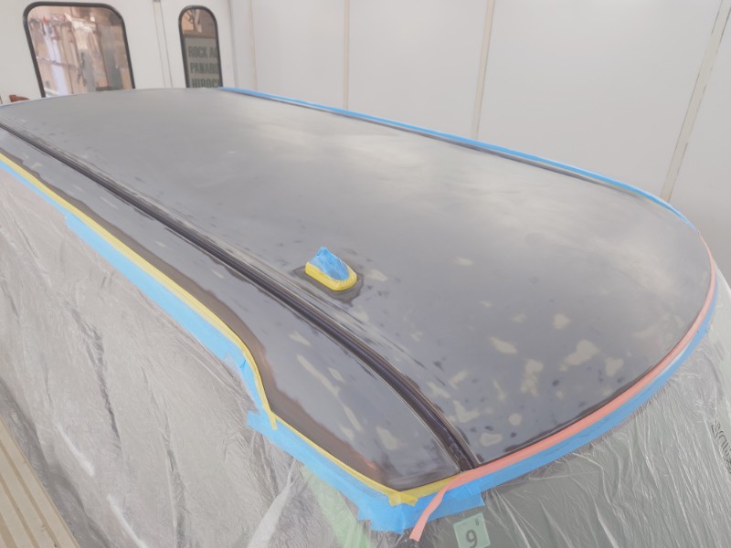 ボディー色カラーベースまで研磨を行いシール性の高い二液型サフェーサーの塗装にかかります。