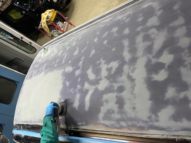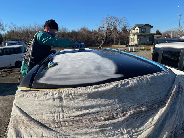 もう少しで劣化の進んだクリアー層の研磨が完了します。