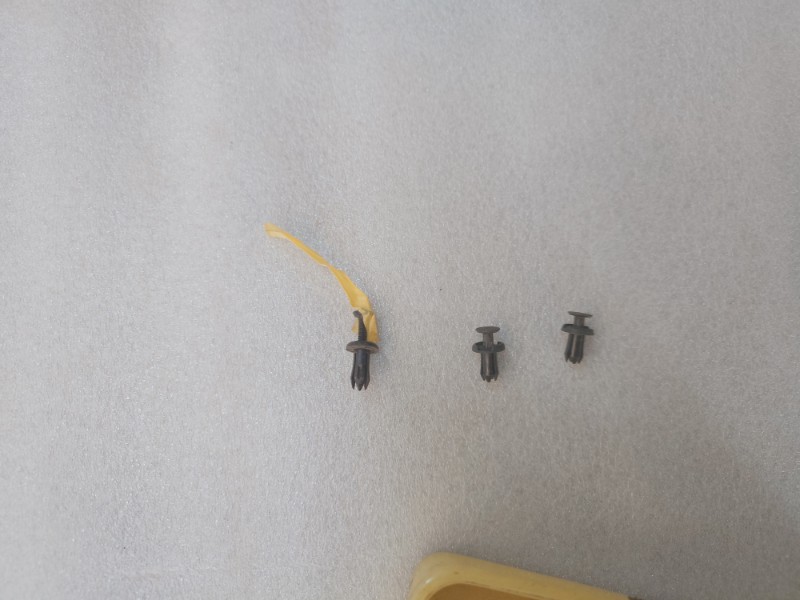 写真左側のサンプルとして車両から外したクリップを参考に、同様のクリップ探して取り付けを行います。