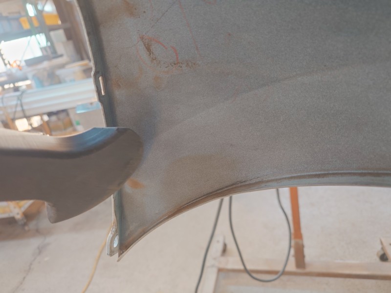加熱硬化後にガイドコートを付け、サフェーサーの研磨作業にかかりました。