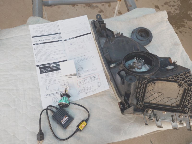 ヘッドライトを外したので日本ライティング製LEDバルブの取り付けを行います。