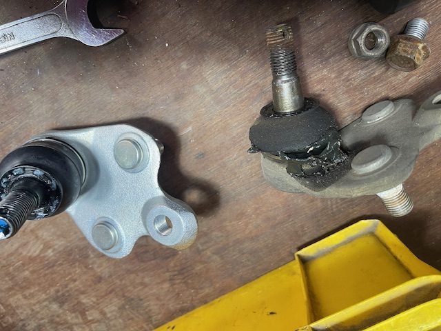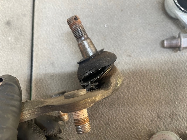 古い部品はブーツが切れグリスが漏れているので、このまま乗り続けるとグリスがなくなり摩耗が進みボールジョイントが抜けてしまう重大な事故につながります。